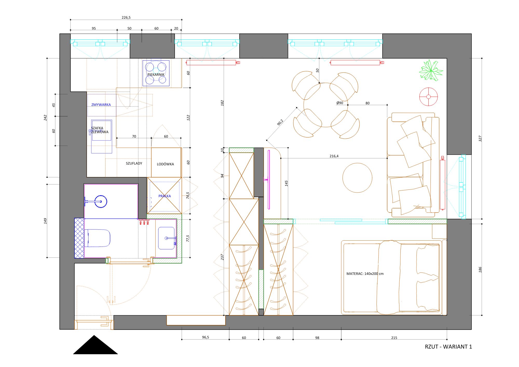 Przygotowuję dla Państwa 2-3 propozycje układów funkcjonalnych, które w jak najlepszy sposób spełniają przedstawione oczekiwania. Forma prezentacji to płaskie rysunki techniczne wraz z wymiarami i opisami