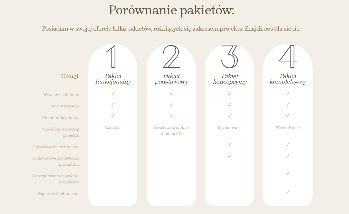 To idealna propozycja dla osób, które nie potrzebują kompleksowego projektu wnętrza, a jedynie wsparcia przy wybranych elementach aranżacji.