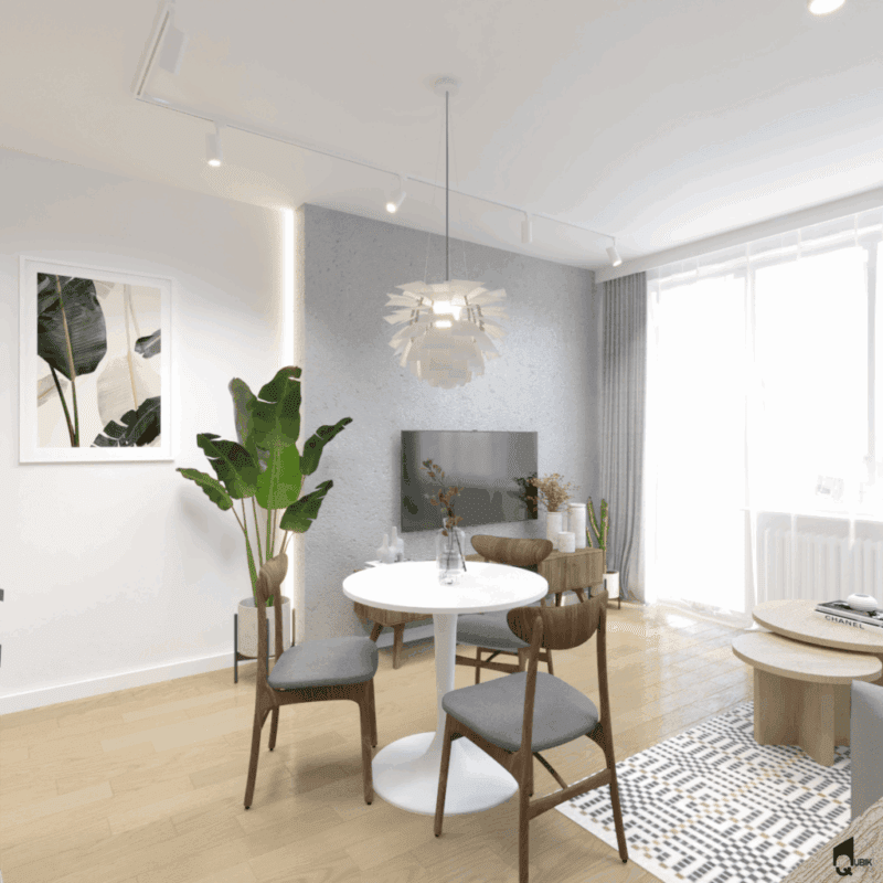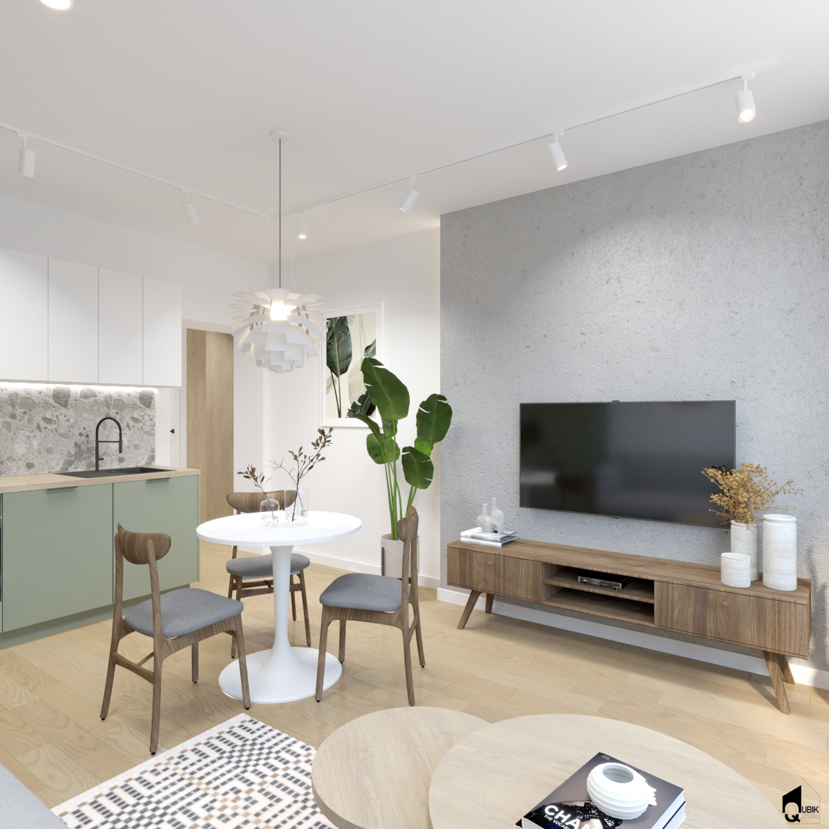 To aranżacja mieszkania 50m2 w bloku, która pokazuje, że nawet nieduża przestrzeń może być wygodna, piękna i praktyczna. Mój projekt wykończenia mieszkania obejmował przygotowanie szczegółowych układów funkcjonalnych, realistycznych wizualizacji 3D, kompletną dokumentację techniczną