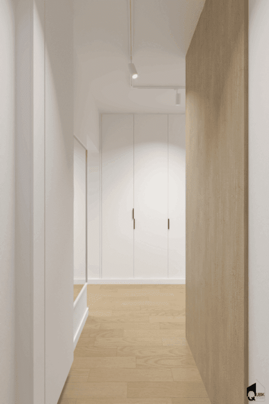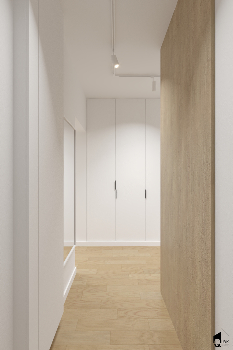 co znacznie podniosło komfort użytkowania. Duża szafa na wymiar dostępna jest zarówno od strony korytarza, jak i sypialni.